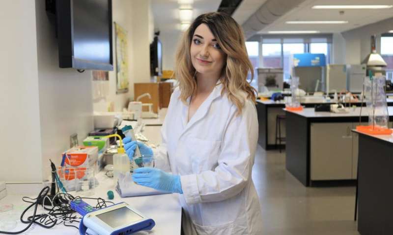 Image: Student Becky Snow will examine microbial communities growing on the plastics (Image Source: staffs.ac.uk)